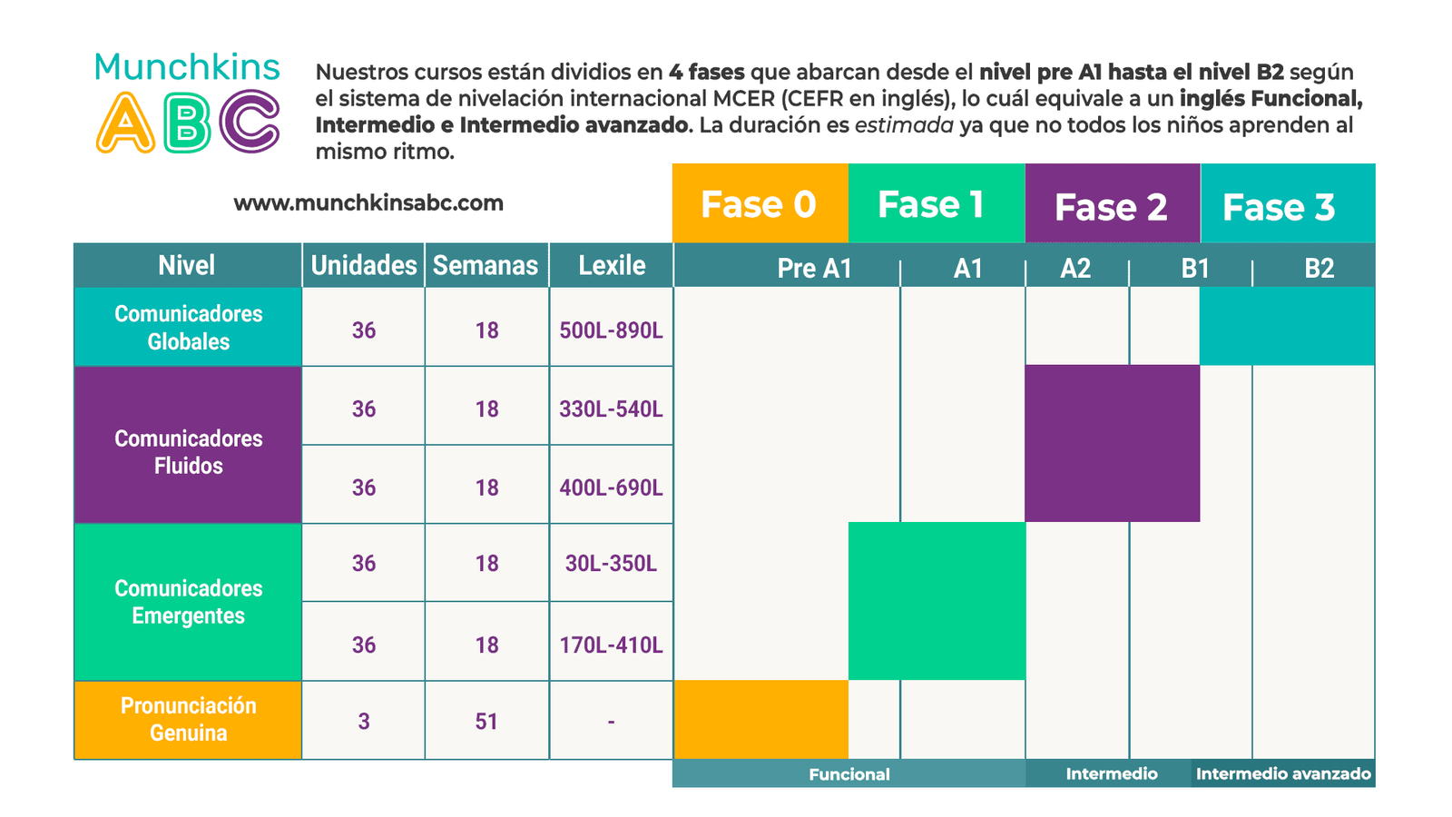 El programa de Munchkins ABC se adhiere al Marco Común Europeo de Referencia para las Lenguas, reconocido internacionalmente. Al alinearnos con estos estándares prestigiosos, equipamos a su hijo con una educación en inglés integral y reconocida mundialmente que le abre puertas en todo el mundo.